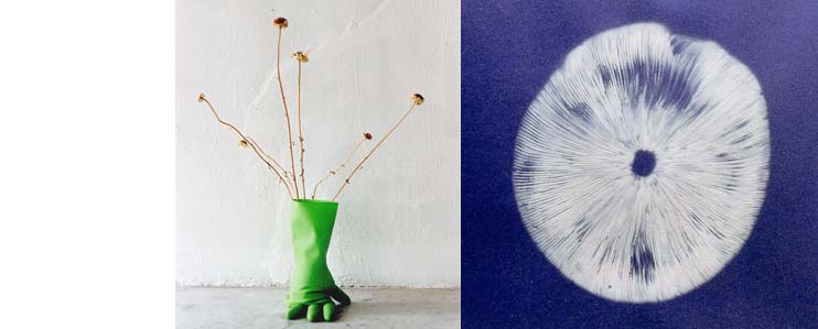 Sporee sur fond bleu et Vase en gant vert