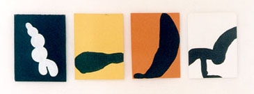 Les Trous, 25 peintures sur papier coloré suspendues par desaiguilles,