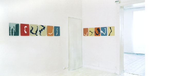 Les Trous, 25 peintures sur papier coloré suspendues à des aiguilles,